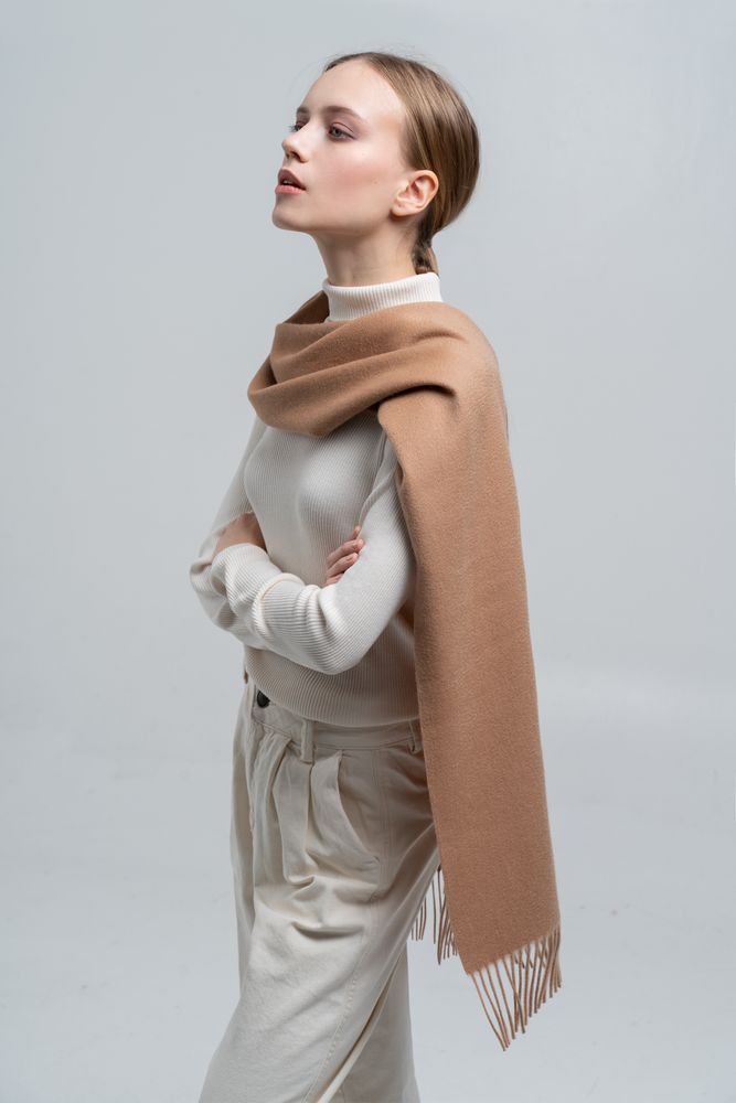 Шарф с будто бы валяной поверхностью — достаточно плотный и сдержанный, чтобы стать финальным штрихом в выверенном комплекте.
