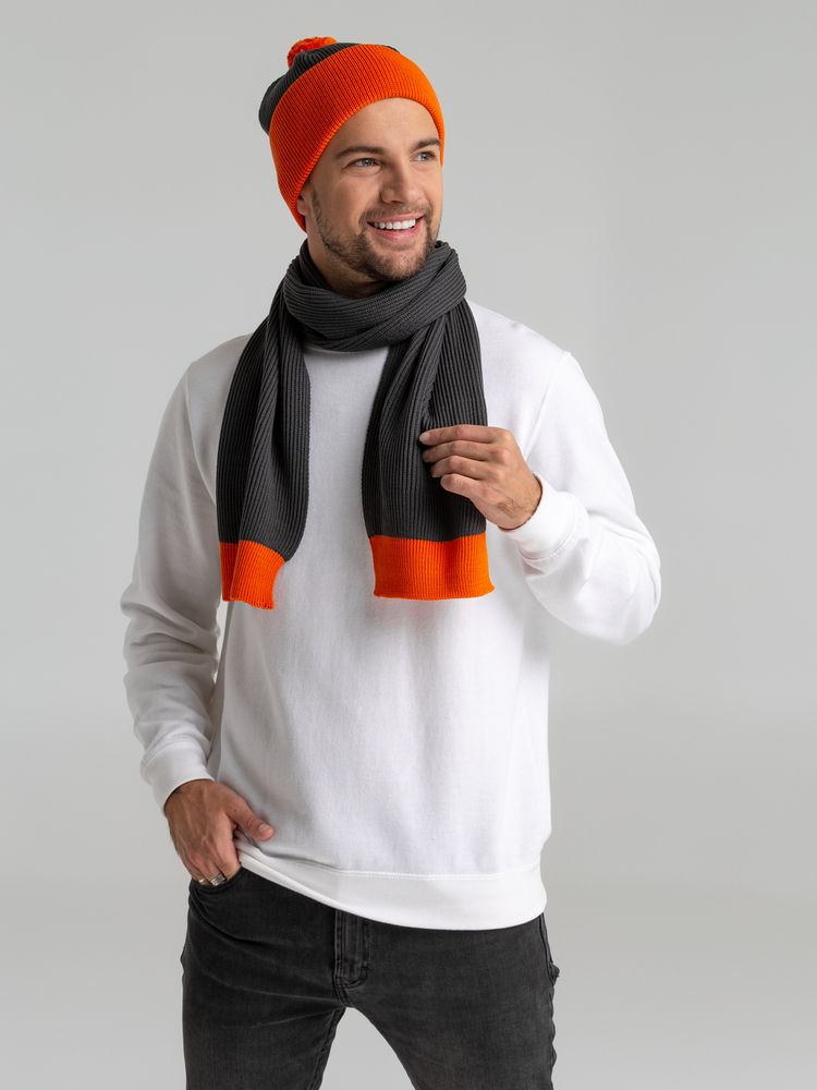 Двухслойный шарф фактурной вязки с контрастной отделкой.