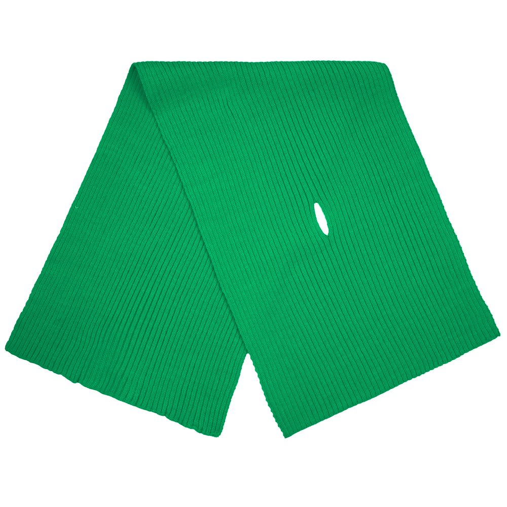 Однослойный шарф фактурной вязки с отверстием для быстрого и удобного завязывания.