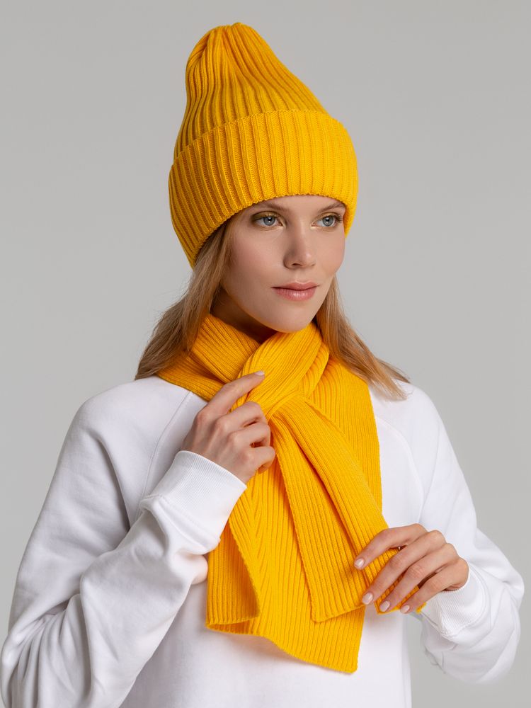 Однослойный шарф фактурной вязки с отверстием для быстрого и удобного завязывания.