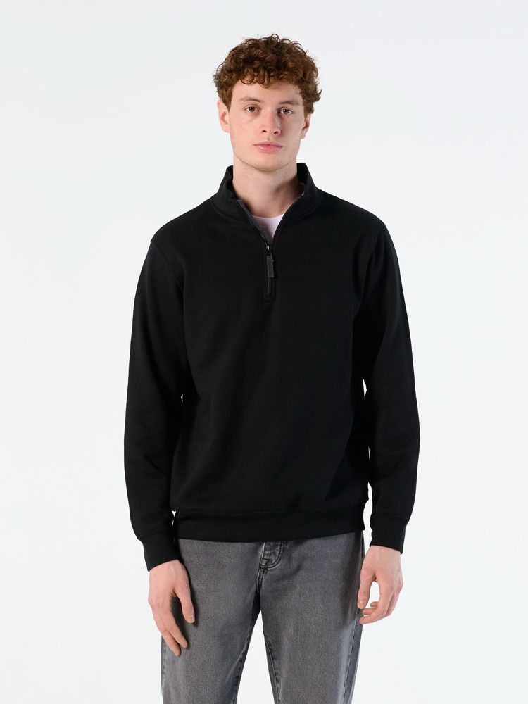 Толстовка с воротником-стойкой на молнии. Лейбл производителя в боковом шве изнутри, в шве горловины — только бирка с размером, что позволяет вам нанести свой логотип.