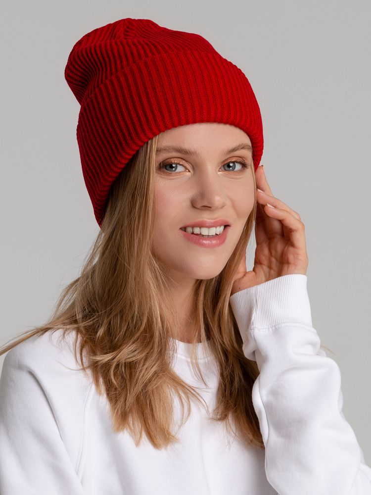 Двухслойная шапка фактурной вязки с отворотом.