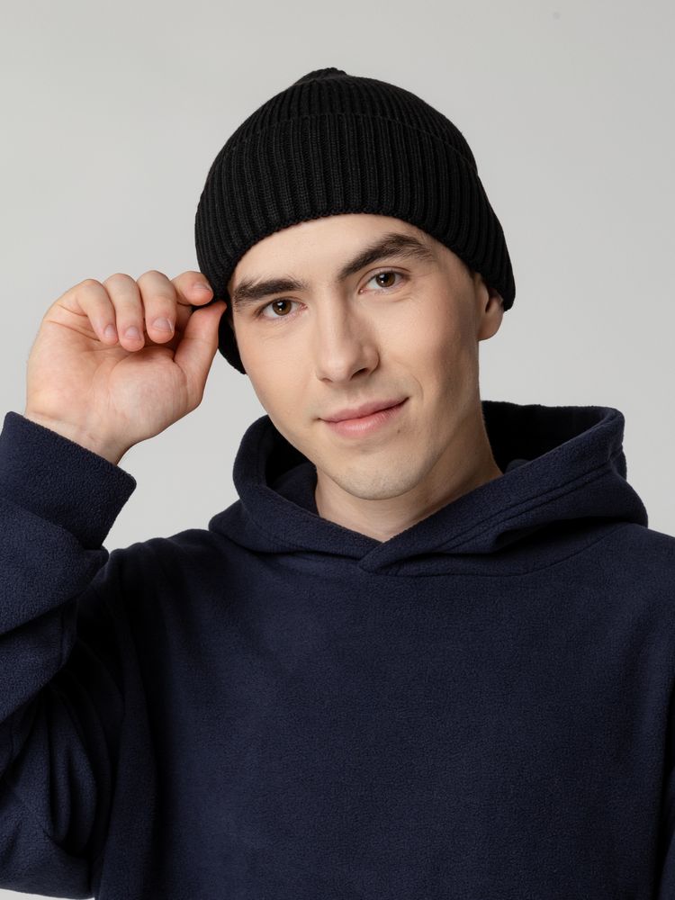 Основное полотно связано резинкой 1×1, отворот — резинкой 2×2.