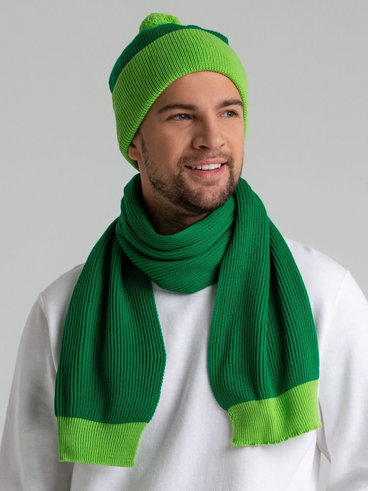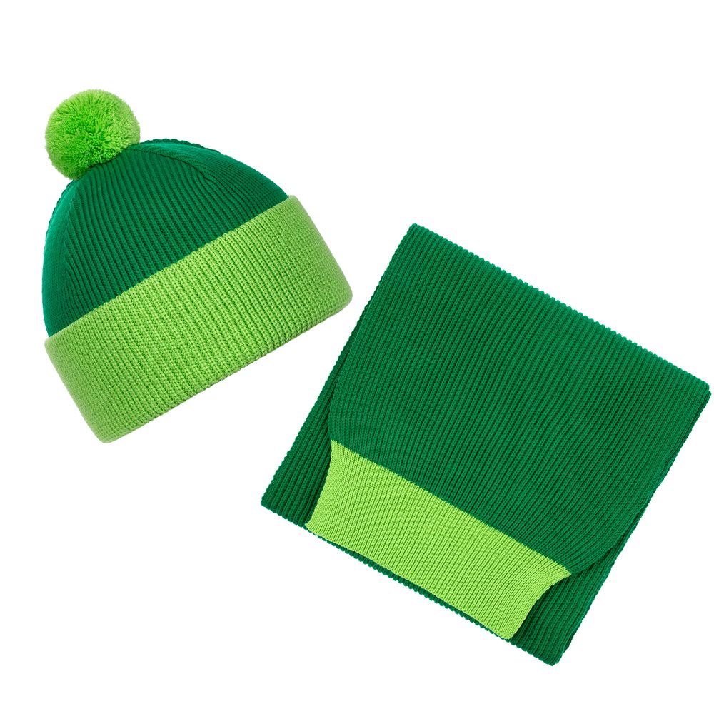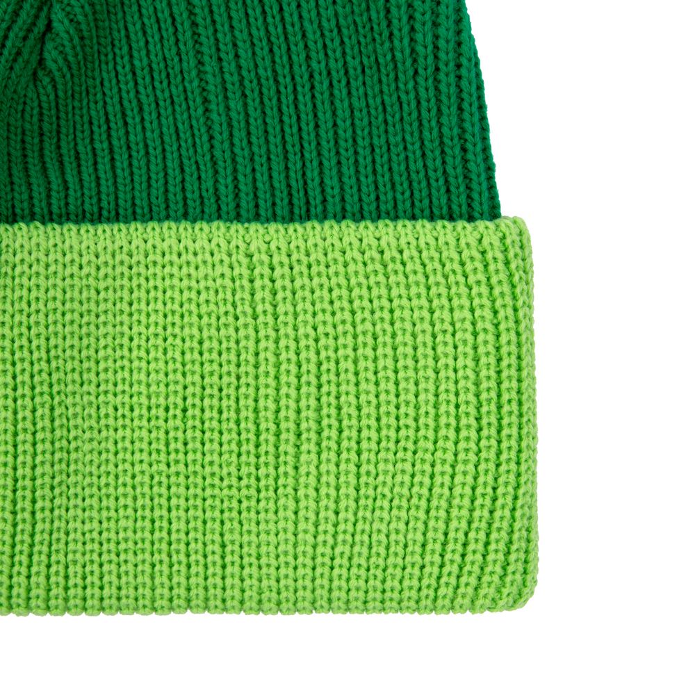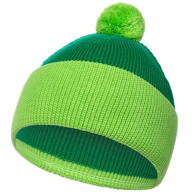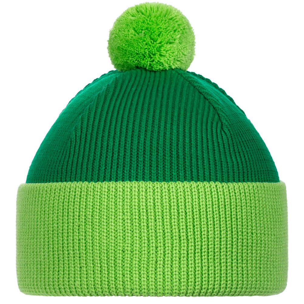 Двуслойная шапка фактурной вязки с контрастным подворотом и помпоном.