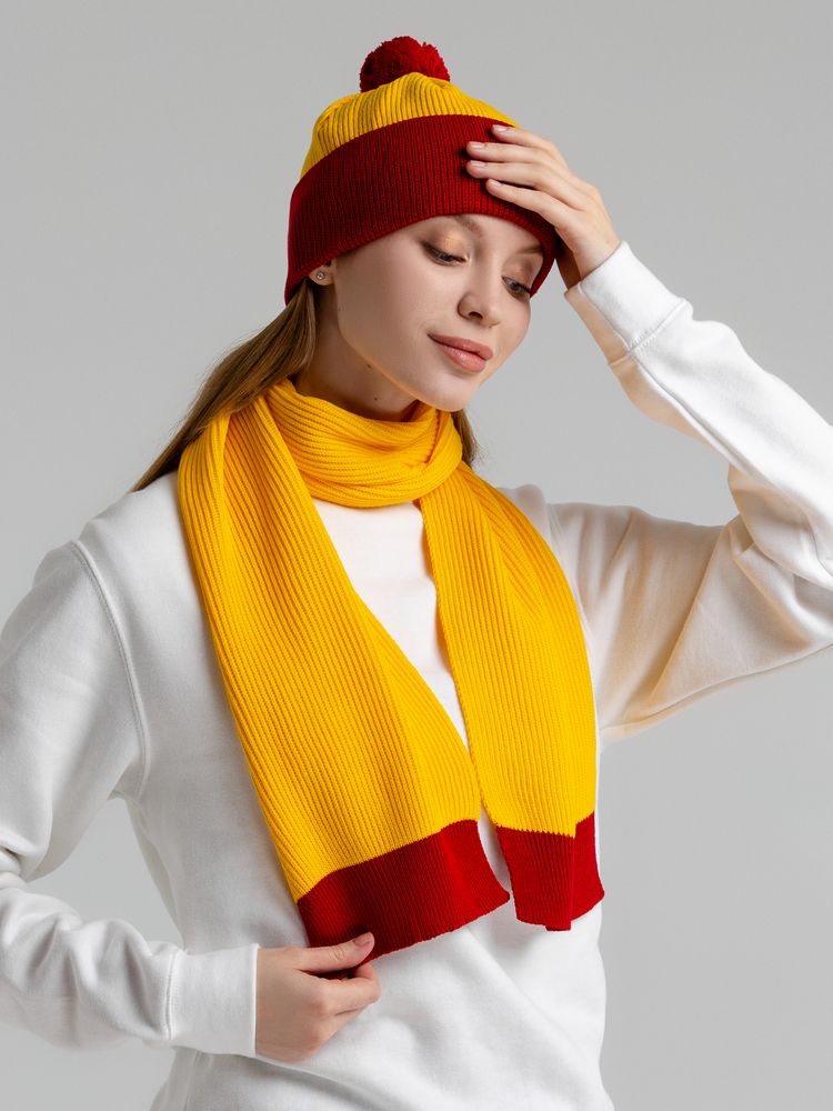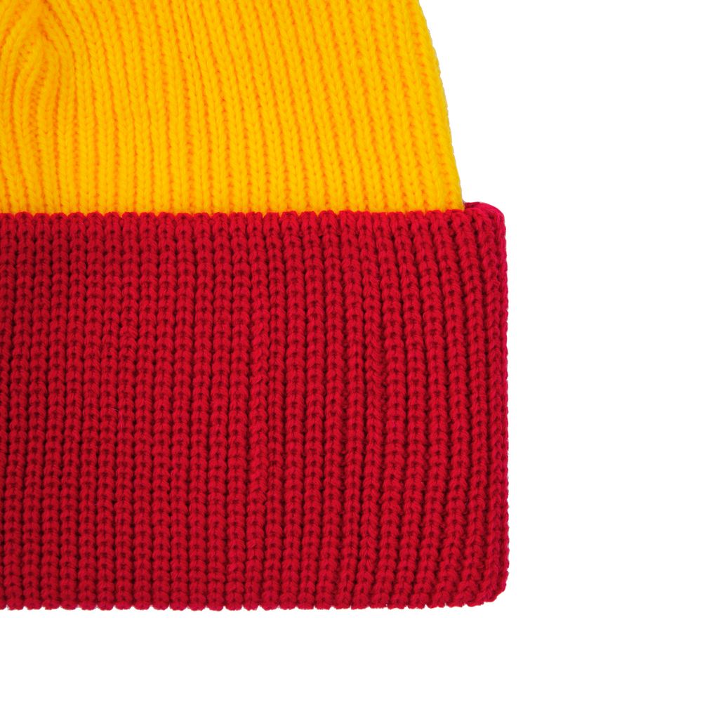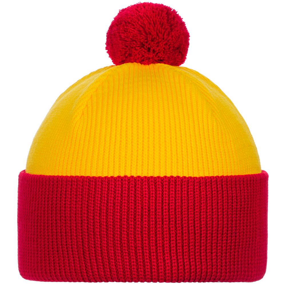 Двуслойная шапка фактурной вязки с контрастным подворотом и помпоном.Поставляется в пакете с липким краем.