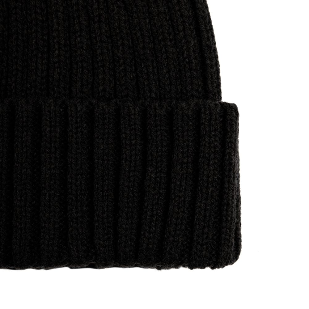 Однослойная шапка рельефной вязки с отворотом.