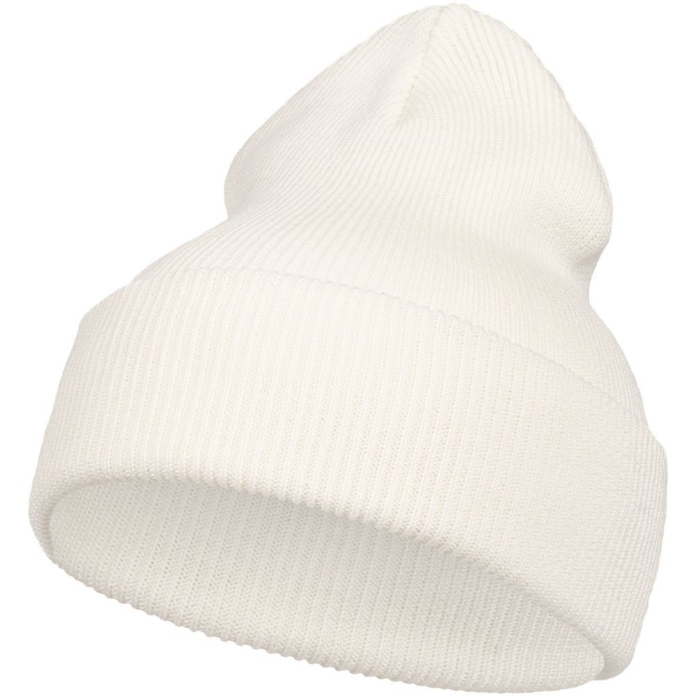 Двухслойная шапка, связанная резинкой, с широким отворотом.