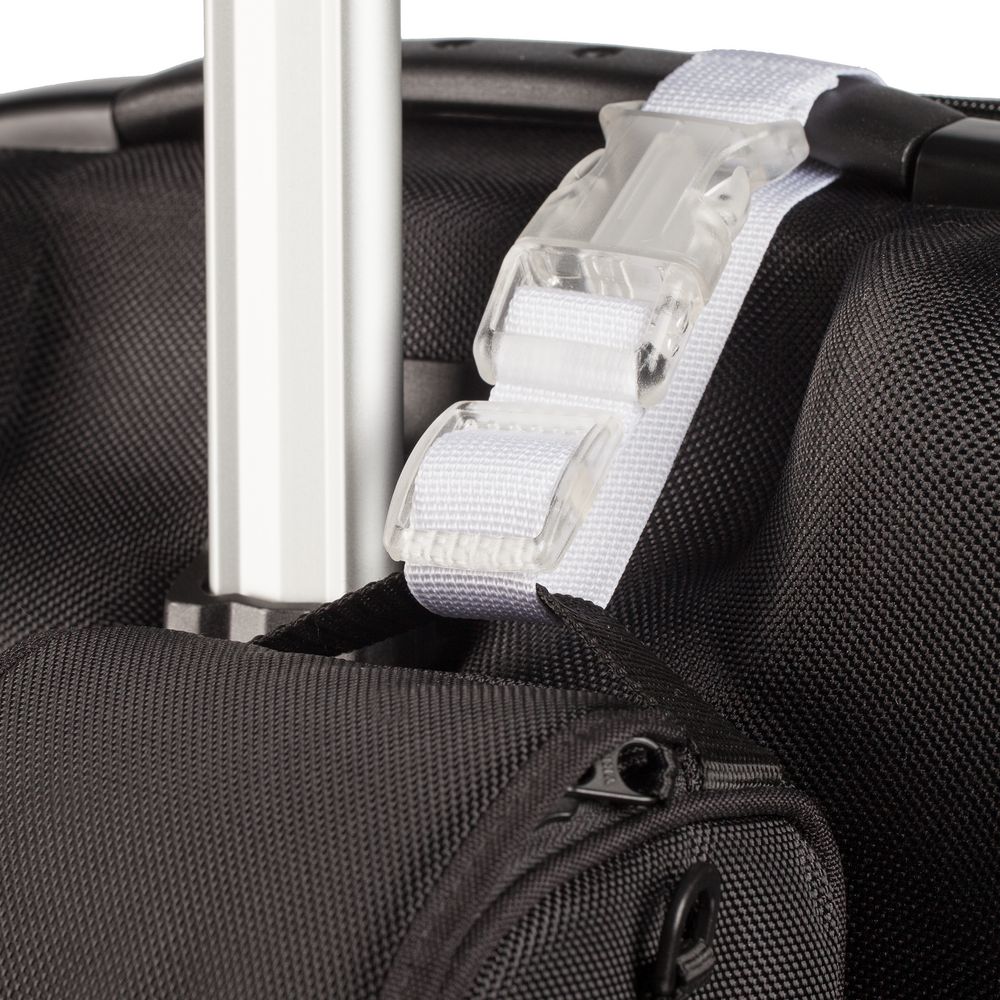 Универсальное крепление с регулируемой длиной для фиксации ручной клади на дорожных сумках и чемоданах.