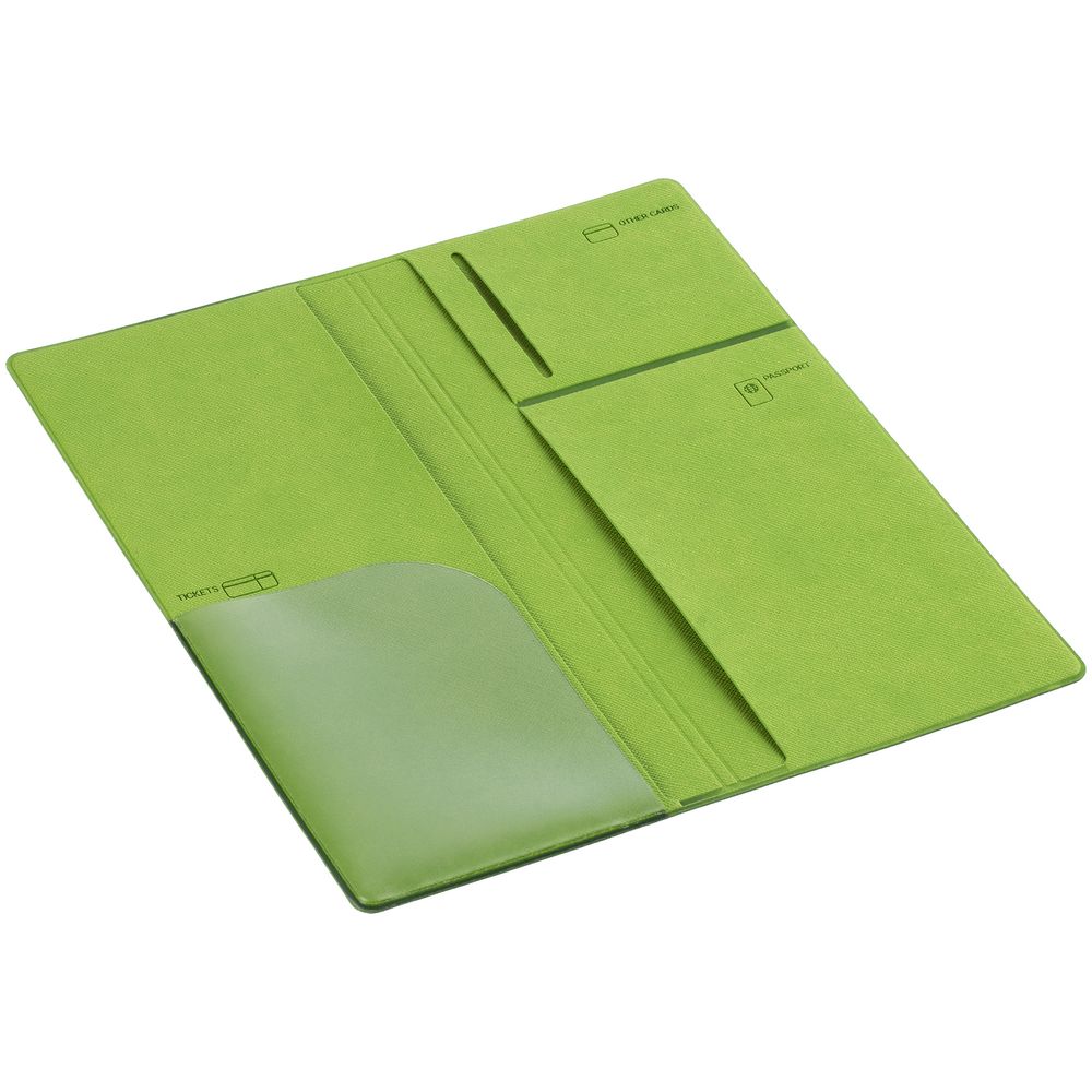 Органайзер из искусственного материала, имитирующего сафьяновую кожу, имеет 5 отделений: для билетов, паспорта, визиток или кредитных карт.Не имеет индивидуальной упаковки.
