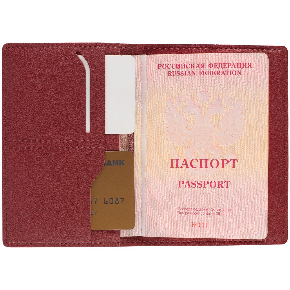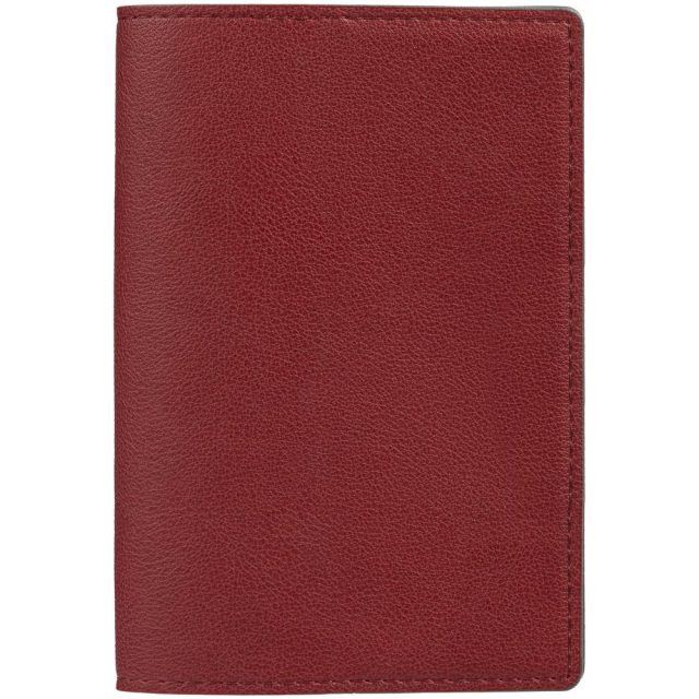 Обложка выполнена из материала Petrus, красный PP. Срез обложки окрашен в серый цвет.Имеет основное отделение для паспорта и 2 кармана для визиток или кредитных карт.