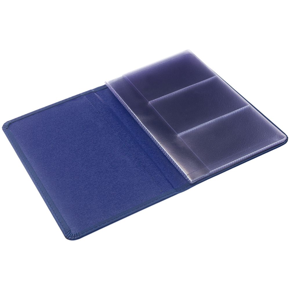 Съемный блок, 36 карманов для визиток. Обложка выполнена из материала Latte синего цвета.