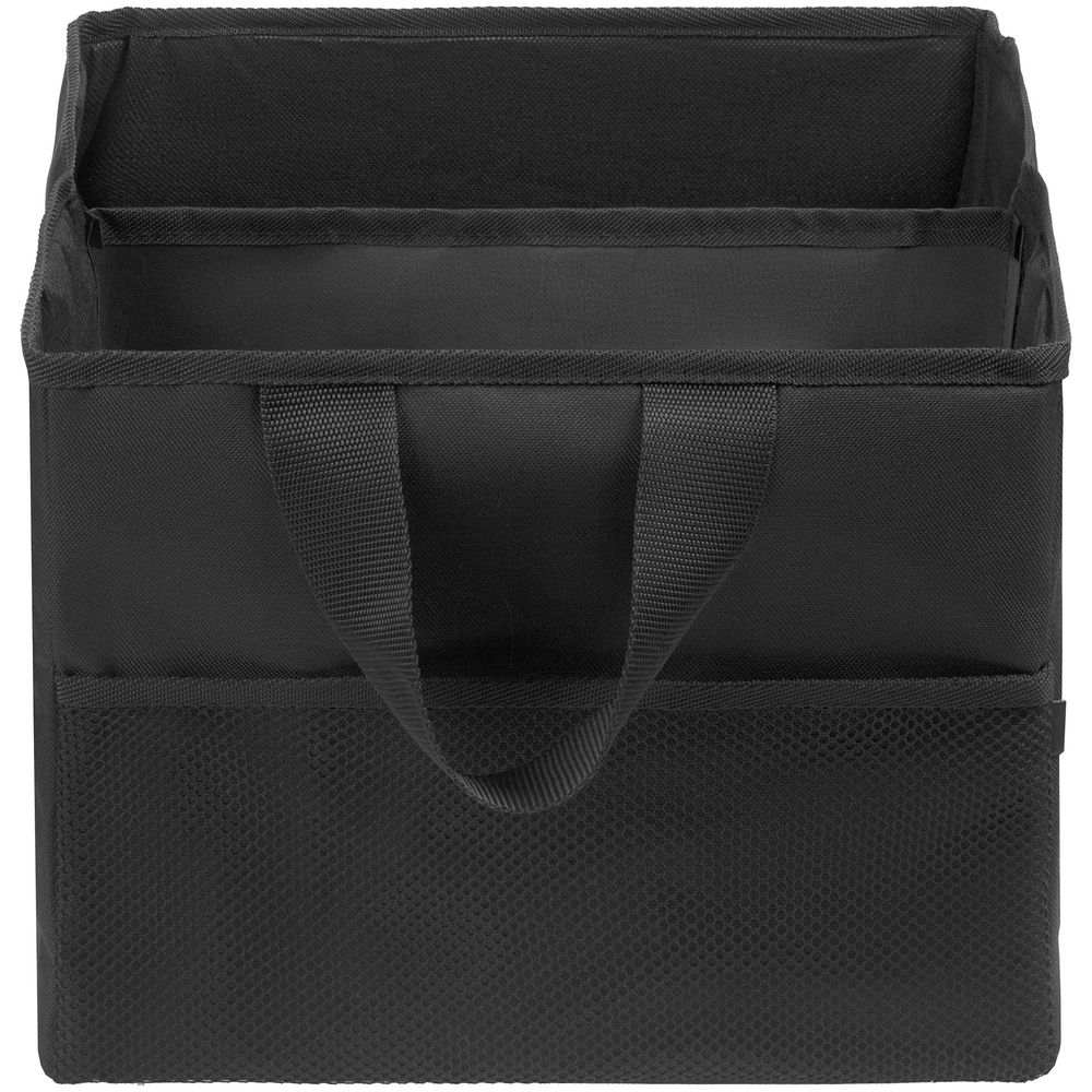 Органайзер с двумя отсеками, внутренним карманом и петельками для крепления мелочей. В нем легко разместить необходимые автомобилисту инструменты и аксессуары.