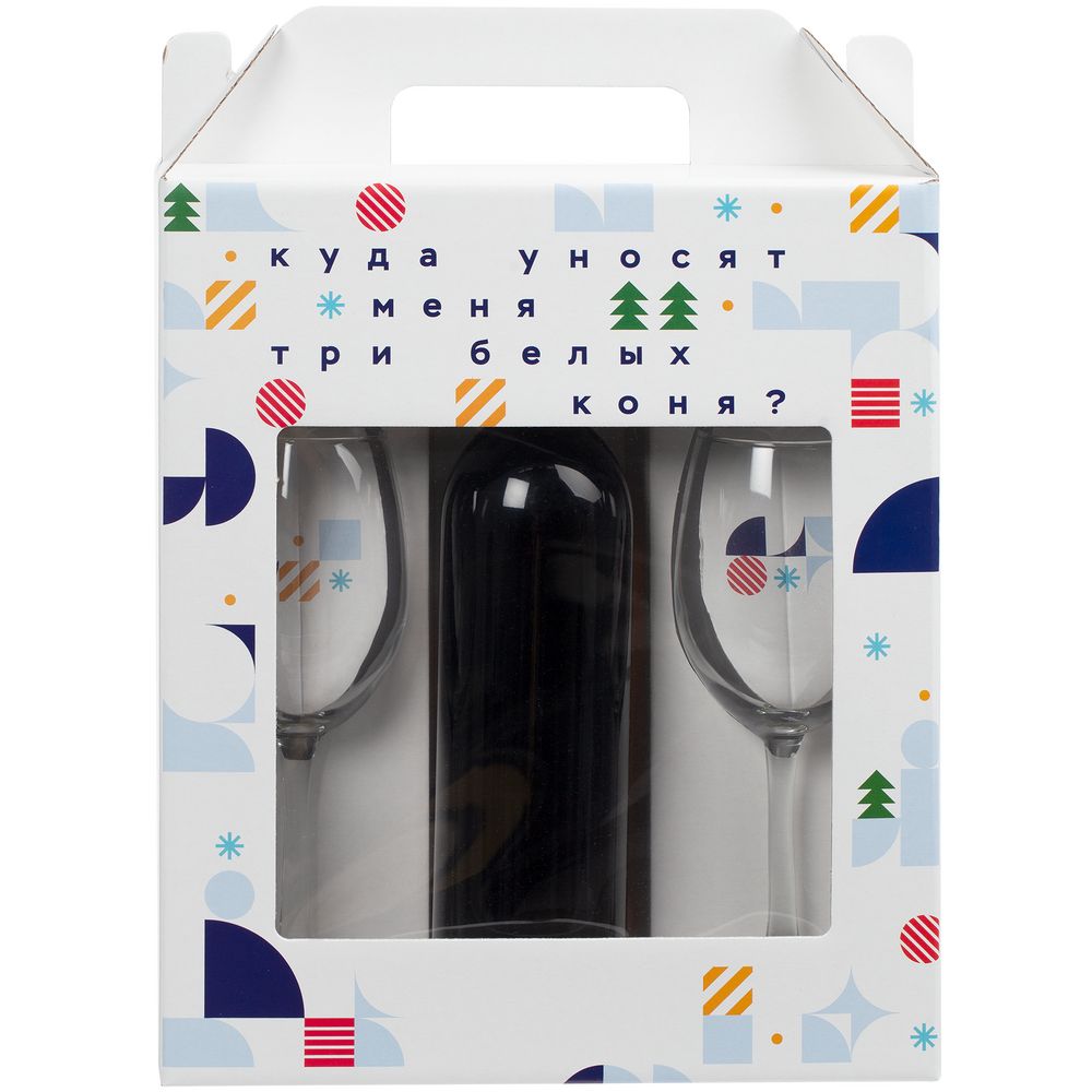 Удобная и стильная вариация для классического подарка с алкоголем — два бокала и место под бутылку. Беспроигрышная праздничная классика, «когда часы двенадцать бьют».