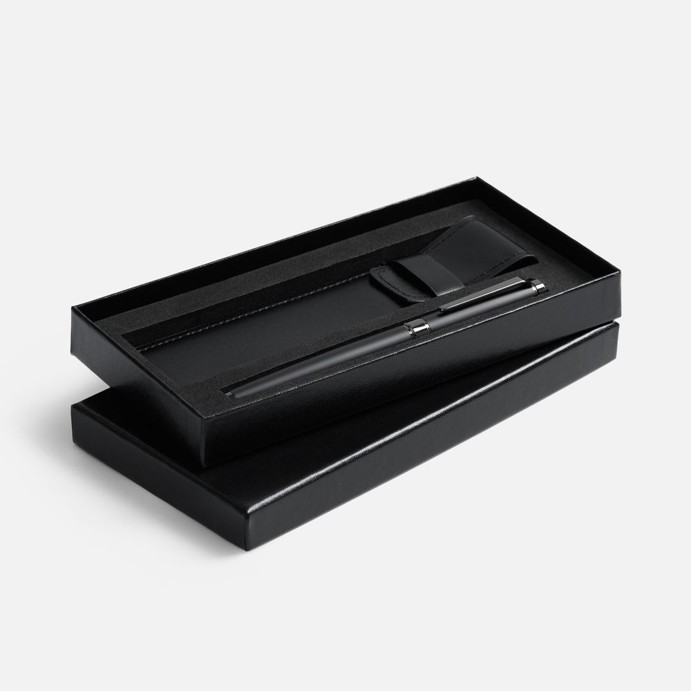Роллер в матовом корпусе с глянцевыми деталями в оттенке gun metal выглядит одновременно сдержанно и презентабельно, а чехол из искусственной кожи не только защищает ручку от пыли и царапин, но и дополнительно подчеркивает статус владельца.