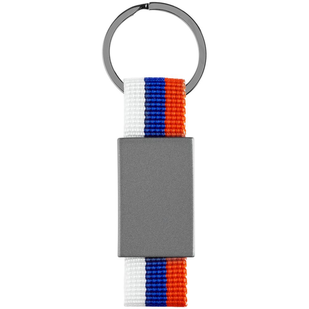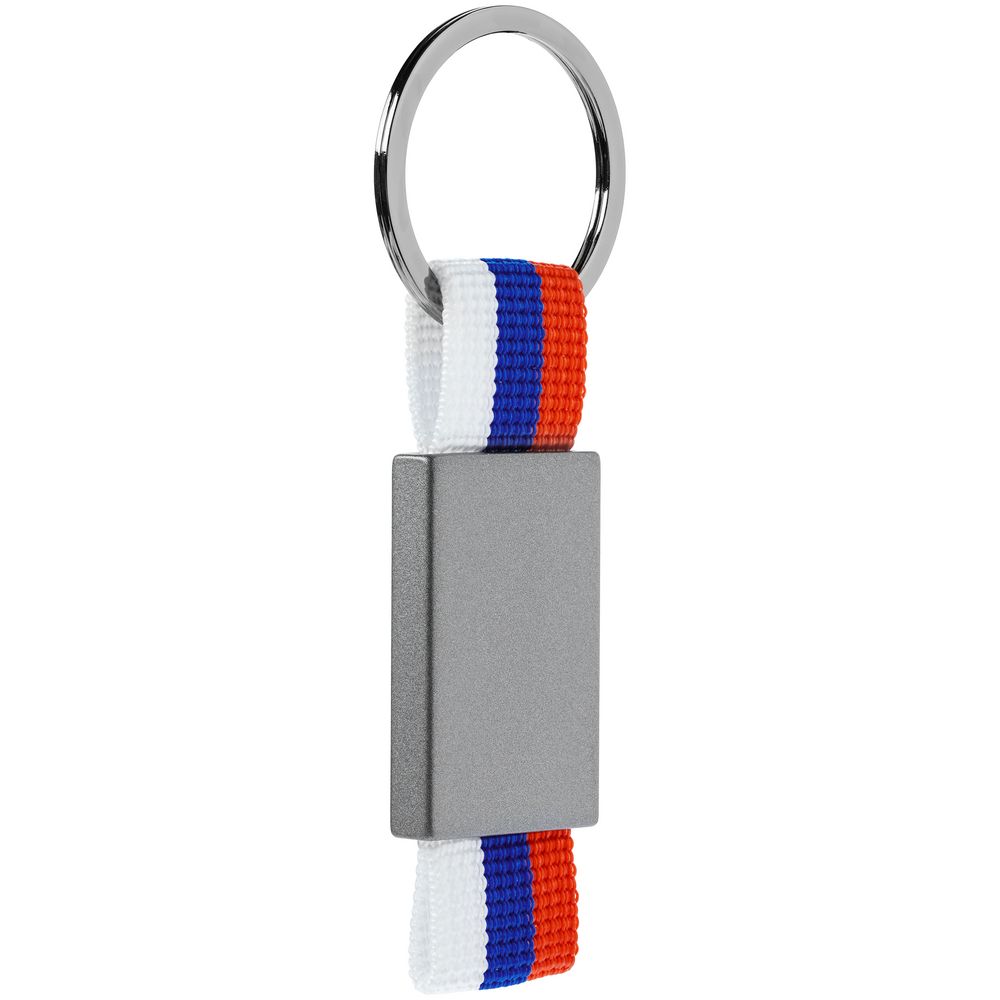 Металлический брелок с графитовым покрытием и тканью в виде триколора. Поставляется в индивидуальной упаковке.