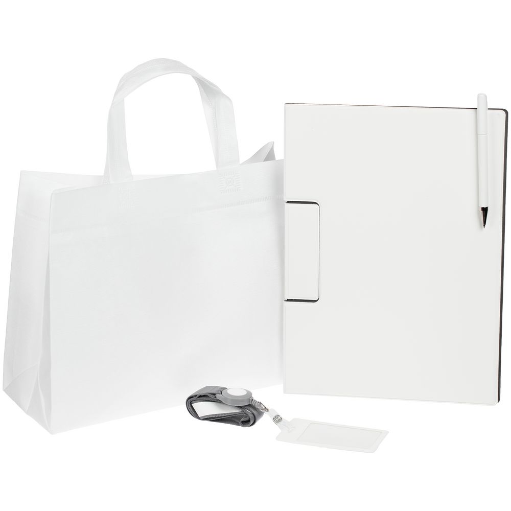 Лаконичный и строгий приветственный набор Devon Span содержит самое необходимое для нового сотрудника или участника профессионального мероприятия. Это папка-планшет и ручка — для комфортных записей и фиксации документов во время деловых переговоров или докладов, а также чехол для пропуска на ленте — для безопасности и идентификации — все в компактной легкой сумке.