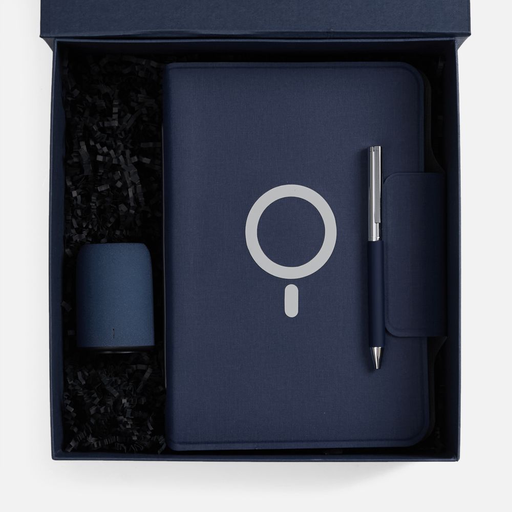 Центральное место в наборе, конечно, занимает органайзер Oiro с блокнотом, подставкой для смартфона и встроенным аккумулятором для беспроводной зарядки — практичное смарт-решение в организации рабочего процесса, где каждая деталь продумана для максимального комфорта, а использование органайзера приносит подлинное удовольствие.