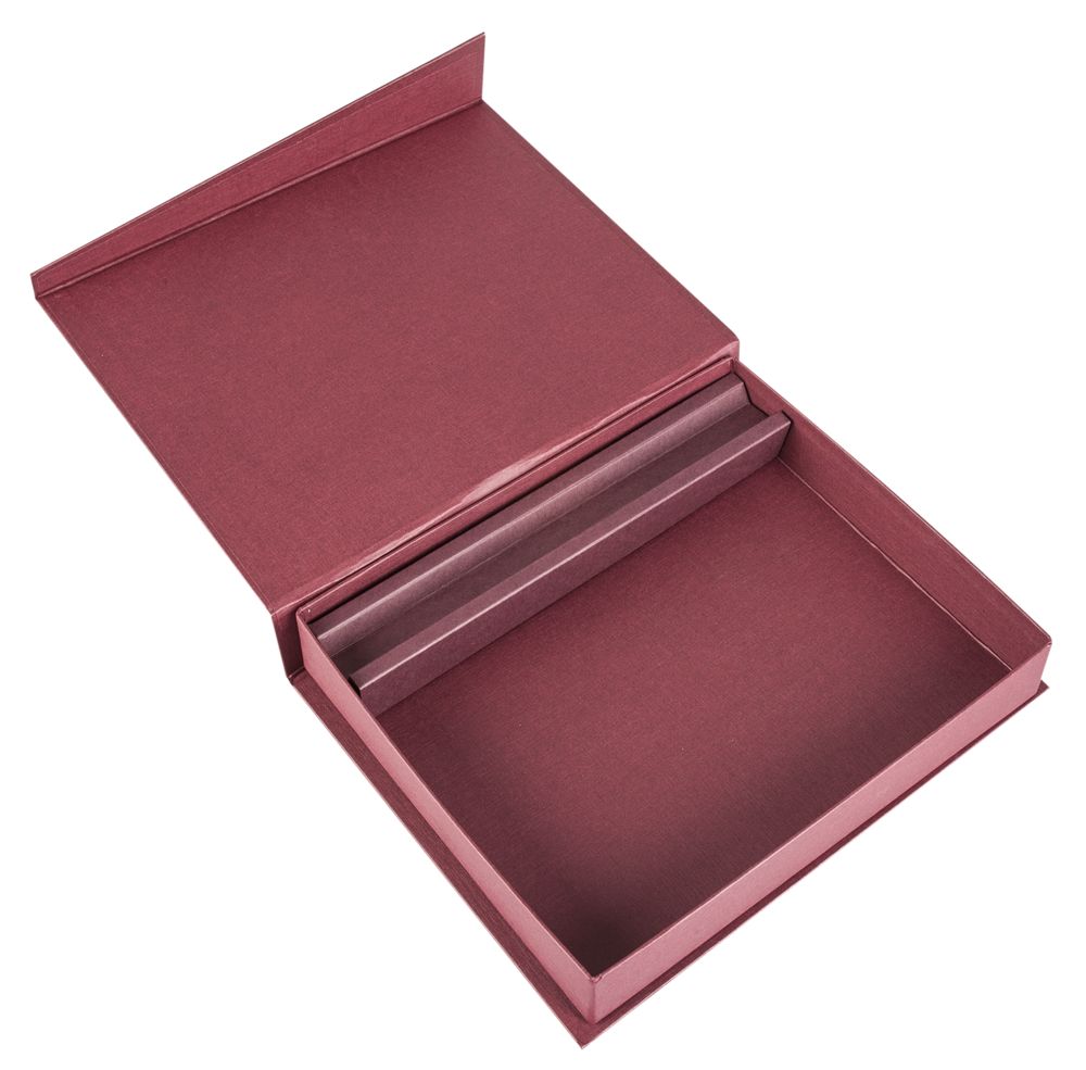 Коробка с клапаном на магните, выполнена из переплетного картона, кашированного бумагой Malmero.