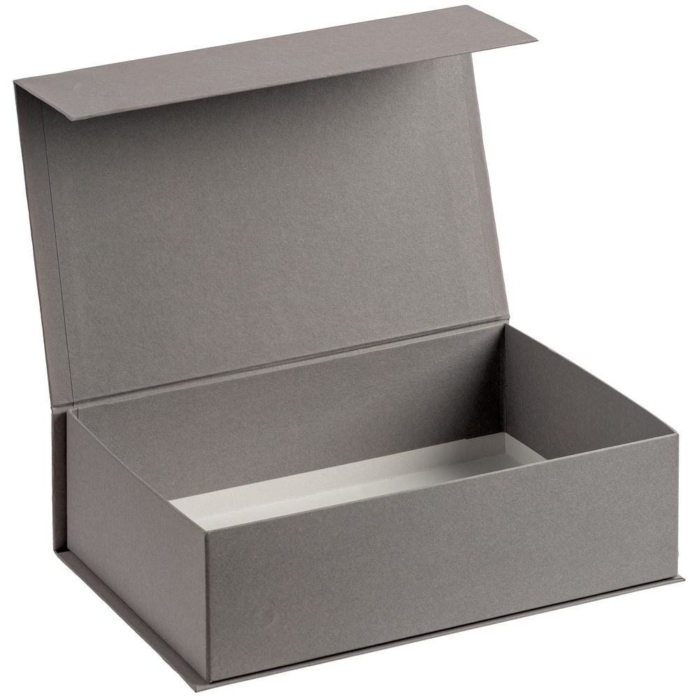 Коробка выполнена из переплетного картона, кашированного дизайнерской бумагой Malmero. На крышке выполнено тиснение голографической фольгой. Закрывается на магнит.