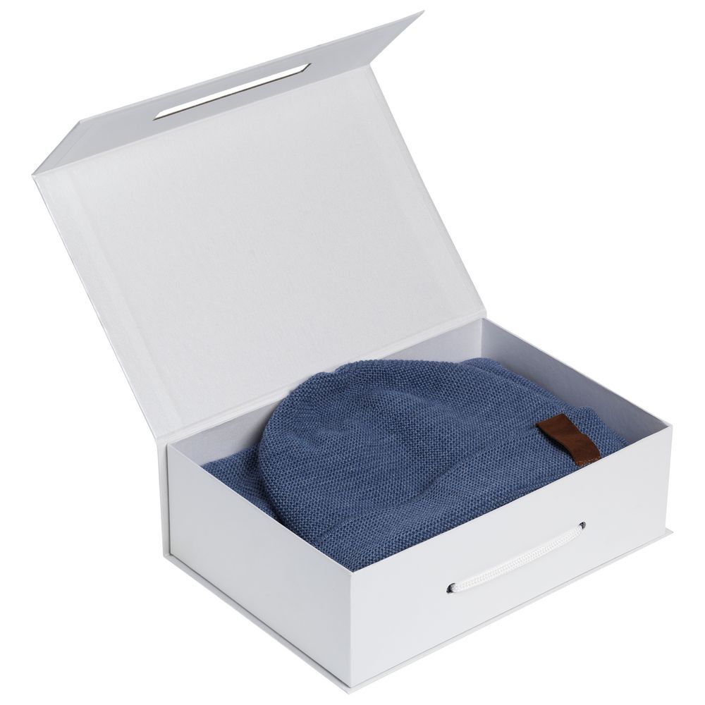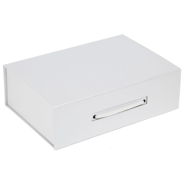 Коробка выполнена из переплетного картона, кашированного дизайнерской бумагой Majestic, с крышкой на магните.