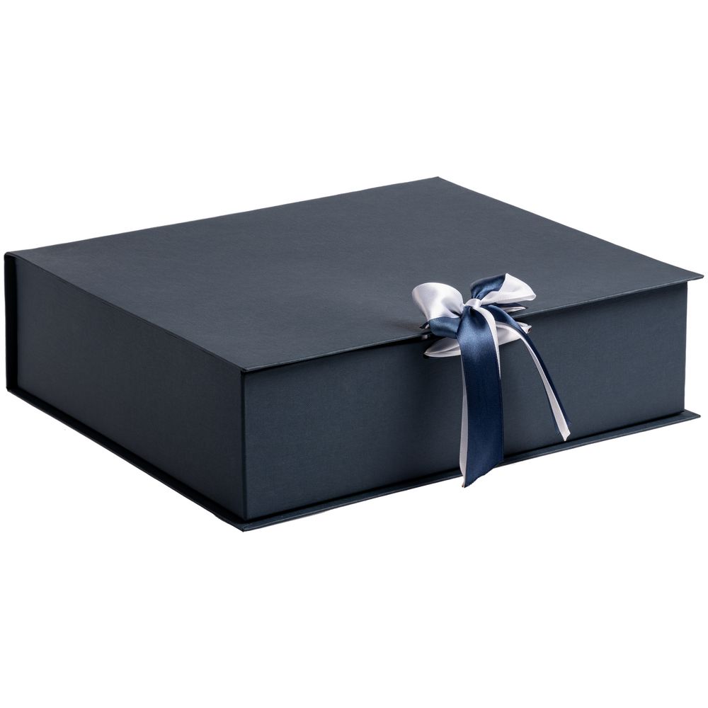 Коробка выполнена из переплетного картона, кашированного дизайнерской бумагой Malmero, с крышкой на лентах.