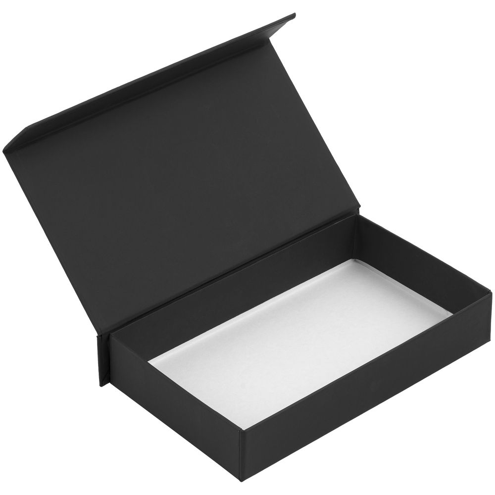 Коробка с крышкой на магните выполнена из переплетного картона, кашированного дизайнерской софт-тач бумагой Senzo.