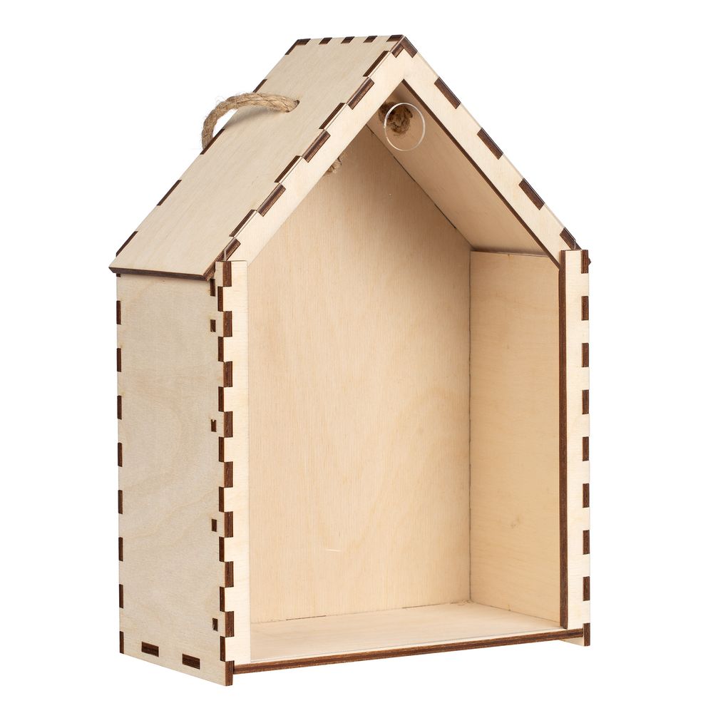 Упаковка в форме домика сделает подарок уютнее, а в дальнейшем сможет стать привлекательной деталью интерьера и использоваться в качестве мини-витрины или полочки.Деревянная коробка-пенал с выдвижной акриловой крышкой и джутовой ручкой.