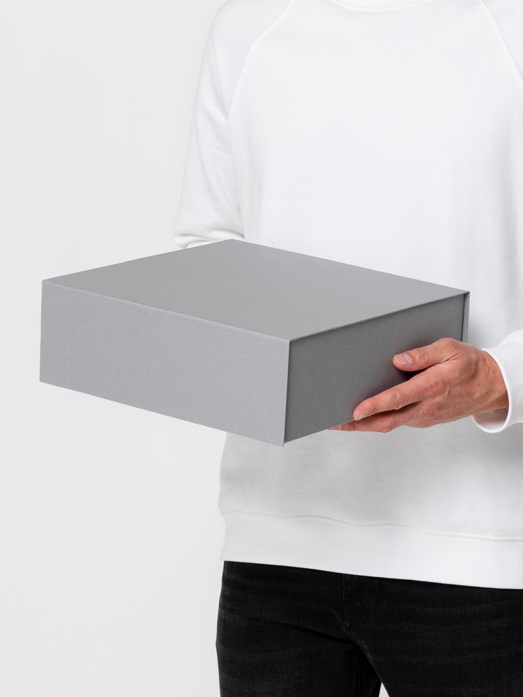 Коробка изготовлена из переплетного картона 1,5 мм, кашированного дизайнерской бумагой Malmero.