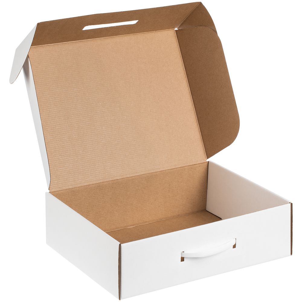 Самосборная коробка-шкатулка со вставной пластиковой ручкой.