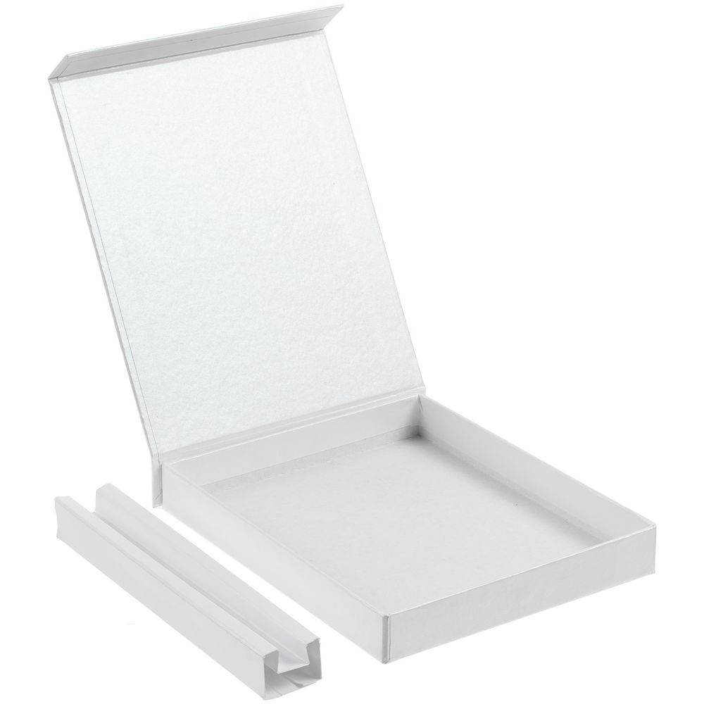 Коробка выполнена из переплетного картона, кашированного гладкой дизайнерской бумагой Majestic, с крышкой на магните.
