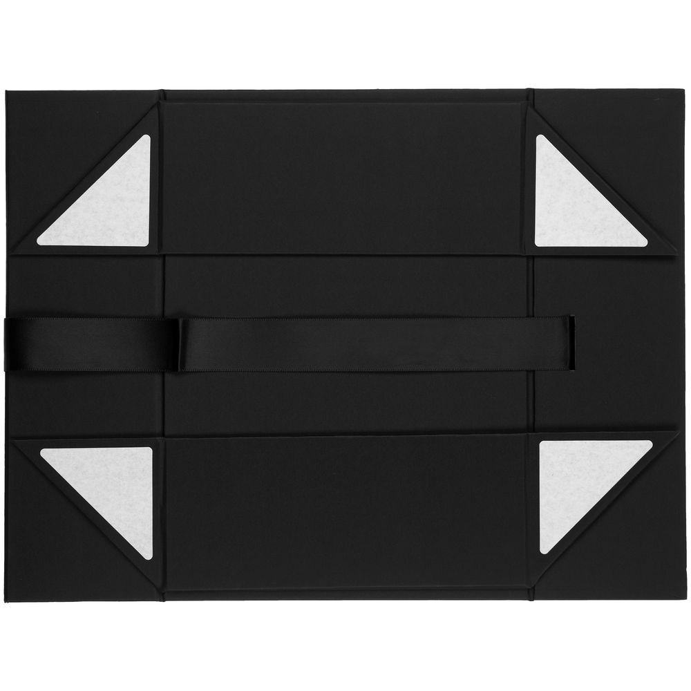 Коробка из переплетного картона, кашированного тонированной в массе крафтовой бумагой. Крышка на двух магнитах дополнительно фиксируется репсовой лентой.Толщина картона 2 мм.