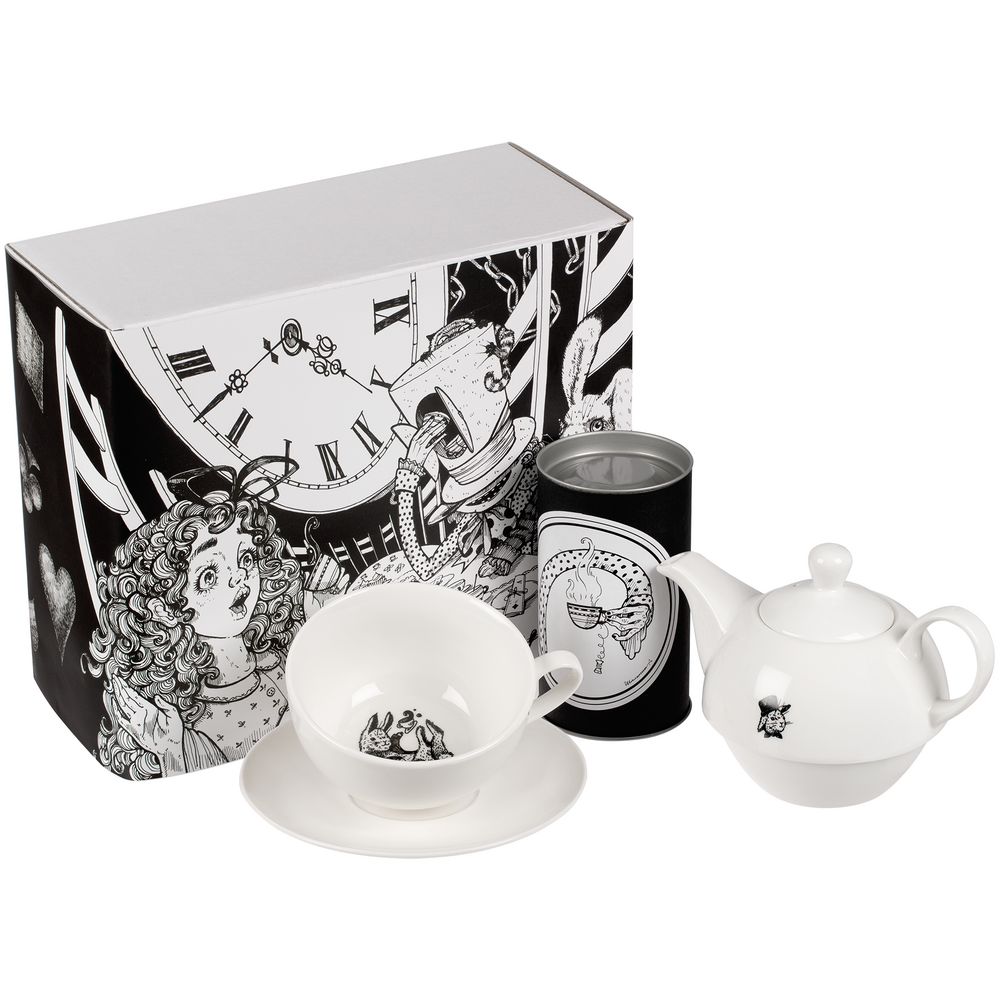 Фраза из произведения классики мировой литературы, которую можно услышать и где-то еще. Набор сделает любой обеденный перерыв чудесатее! Чай так и просится, чтобы его выпили! Следуйте за Белым Кроликом от чайничка на дно чашечки и окунитесь в сказочную атмосферу миров Льюиса Кэрролла.В набор входят: