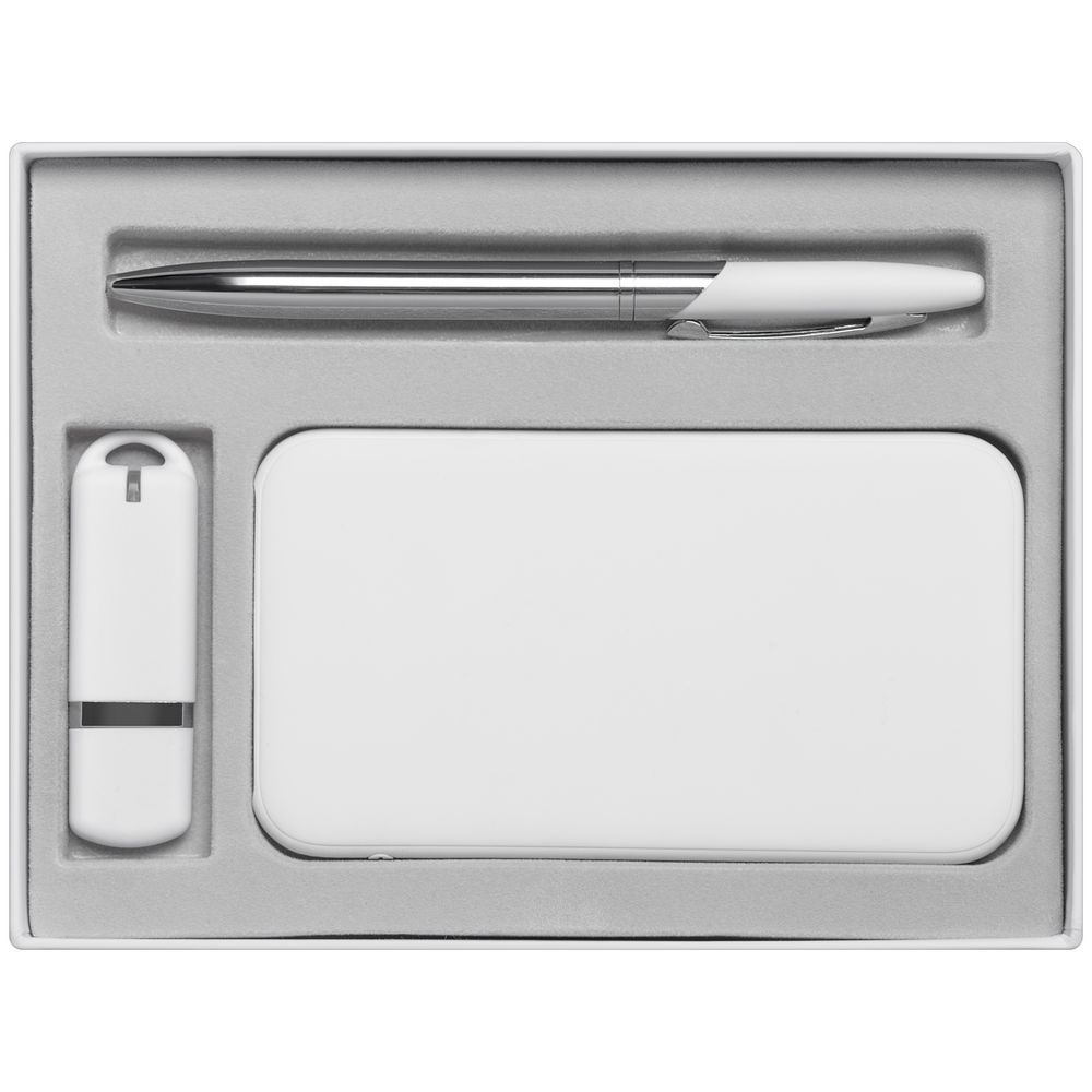 флешка и аккумулятор — пластик, покрытие софт-тач; ручка — металл, покрытие софт-тач; переплетный картон