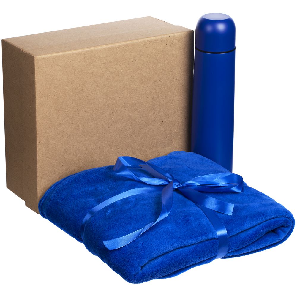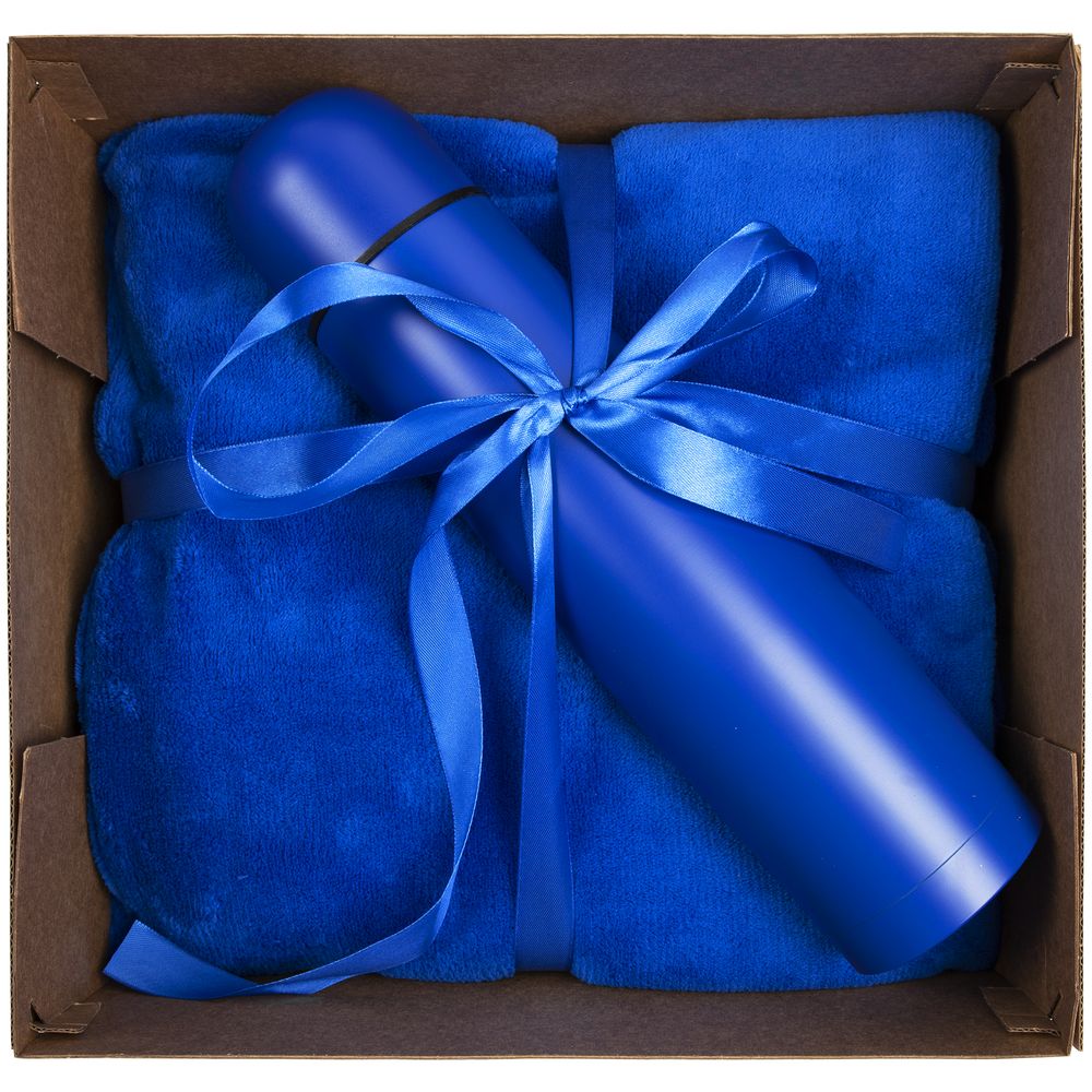 термос — нержавеющая сталь, корпус; пластик, крышка; плед — полиэстер 100%, длинноворсный флис, 220 г/м²; коробка — микрогофрокартон