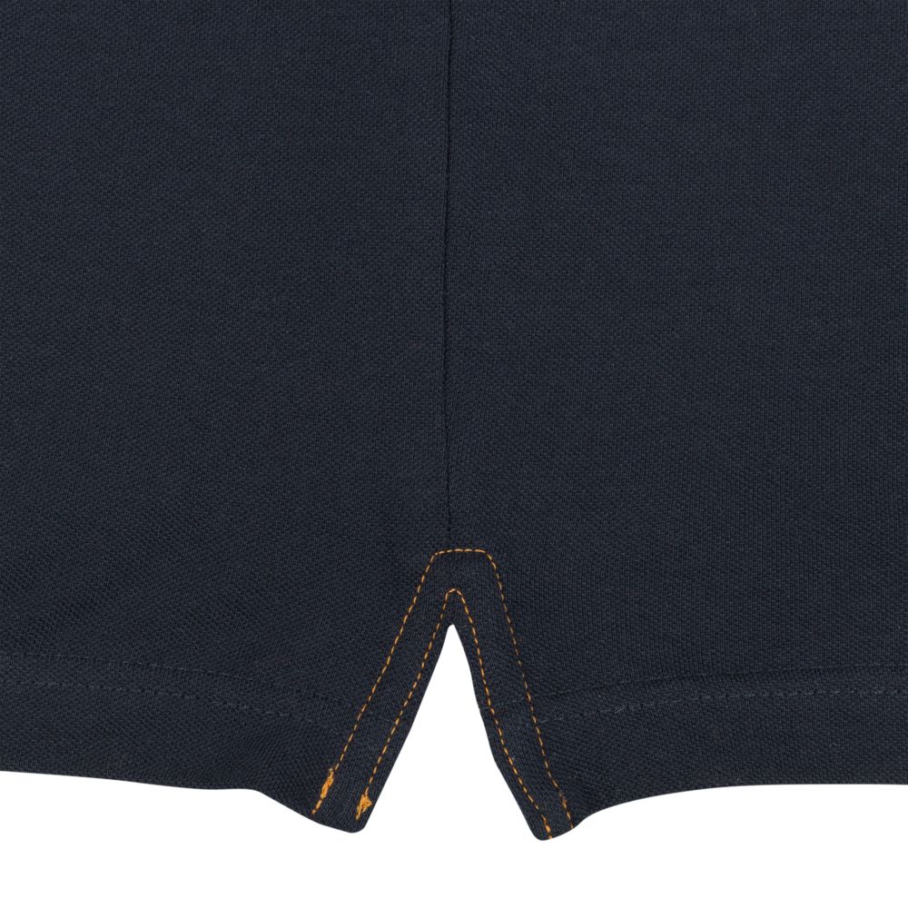 Рубашка поло с джинсовым воротником и контрастной отстрочкой.