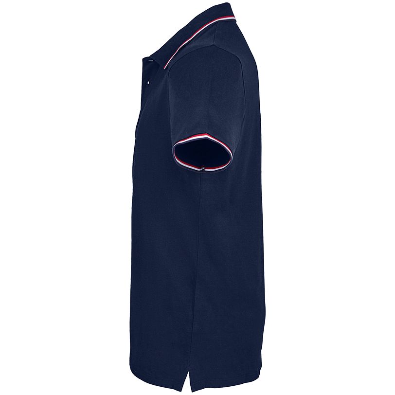 Мужская рубашка поло с боковыми швами. Лейбл производителя в боковом шве изнутри, в шве горловины — только бирка с размером, что позволяет вам нанести свой логотип.