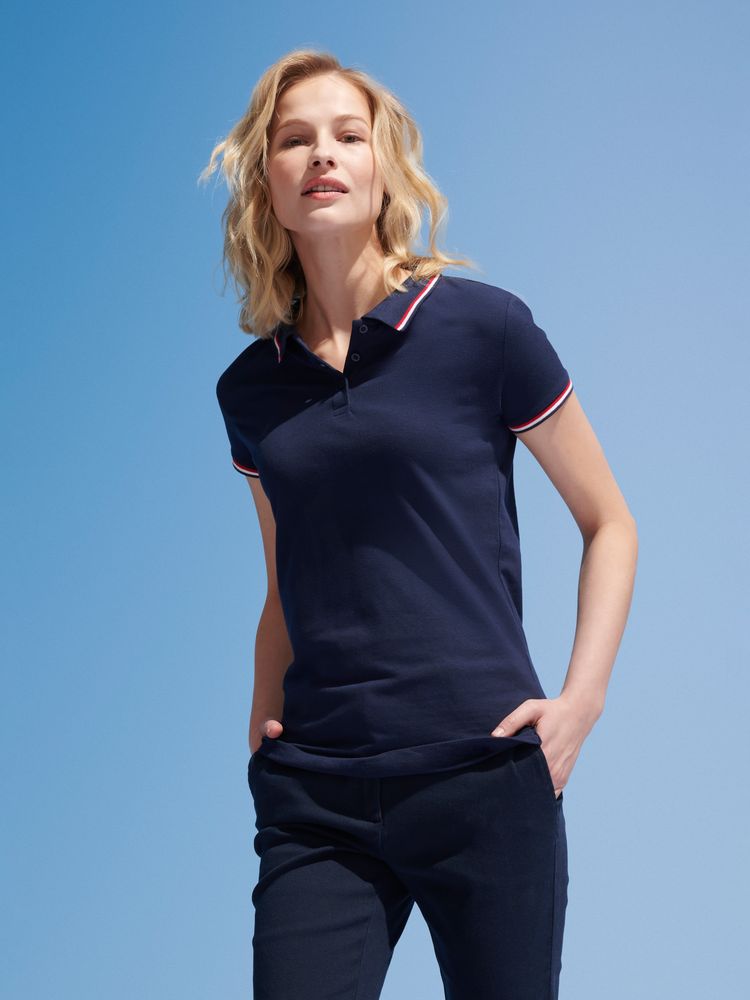 Женская рубашка поло с боковыми швами. Лейбл производителя в боковом шве изнутри, в шве горловины — только бирка с размером, что позволяет вам нанести свой логотип.