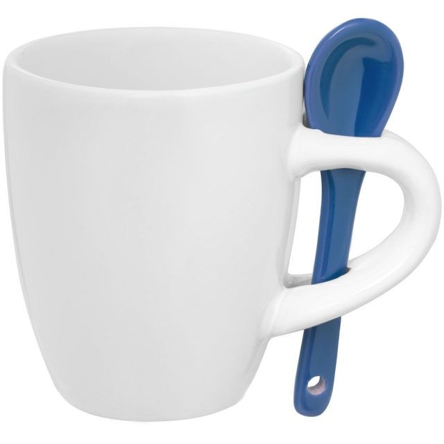 Кофейная кружка Pairy с ложкой, белая с синей