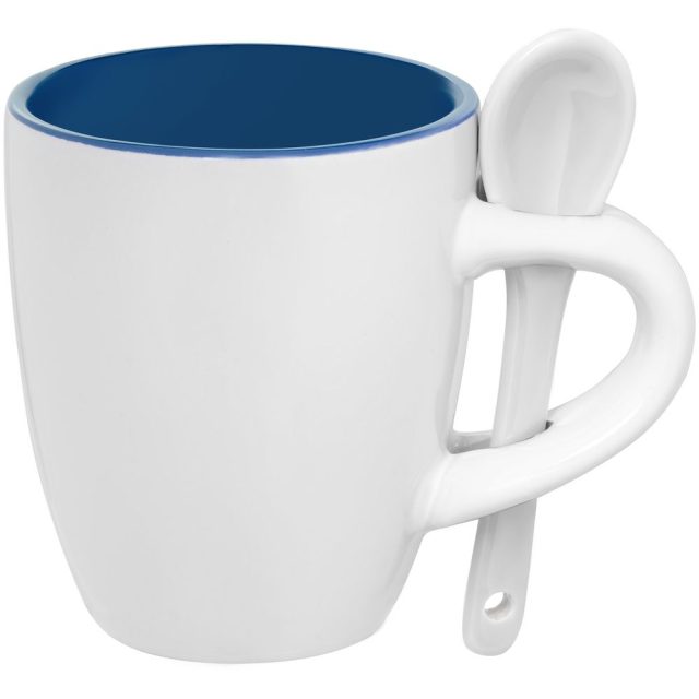 Кофейная кружка Pairy с ложкой, синяя с белой