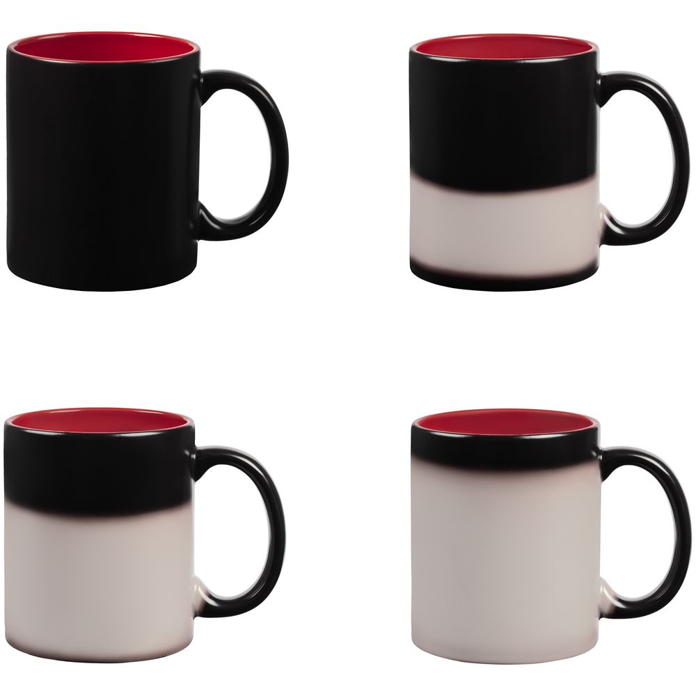 Кружка-хамелеон обладает интересным эффектом: стоит налить горячую воду, и ее цвет поменяется с черного на белый.Емкость 330 мл.На поверхности кружки встречаются пятна, которые исчезают после нагрева в термопрессе.