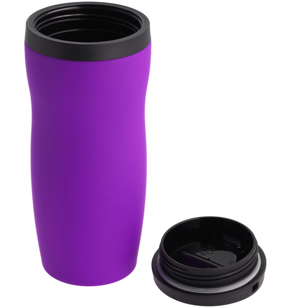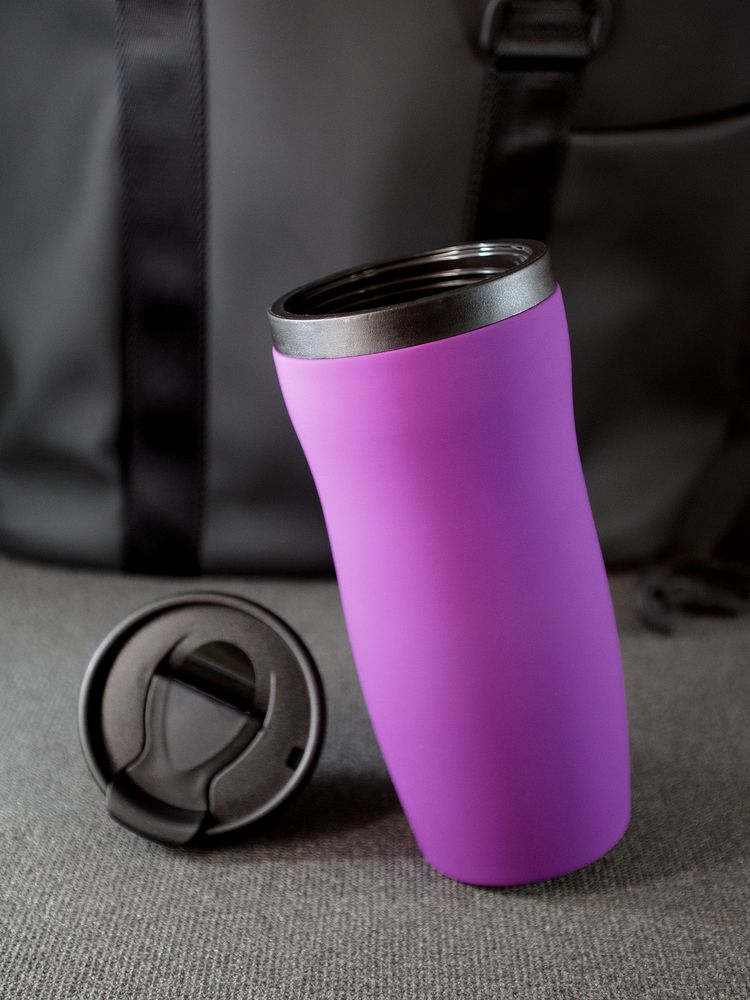 Двухслойная конструкция из нержавеющей стали снаружи и пищевого пластика внутри. Герметичная завинчивающаяся крышка с откидным клапаном для питья. Покрытие софт-тач. В отверстие в крышке можно вставить шнурок для удобного ношения стакана на руке. Шнурок в комплект не входит.