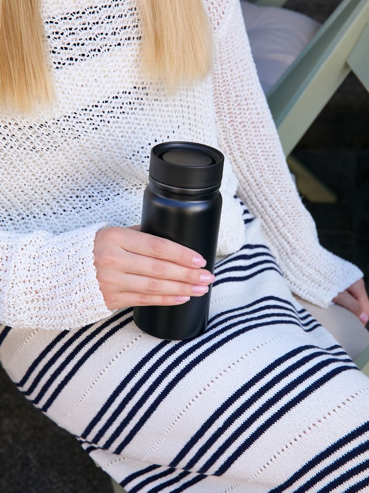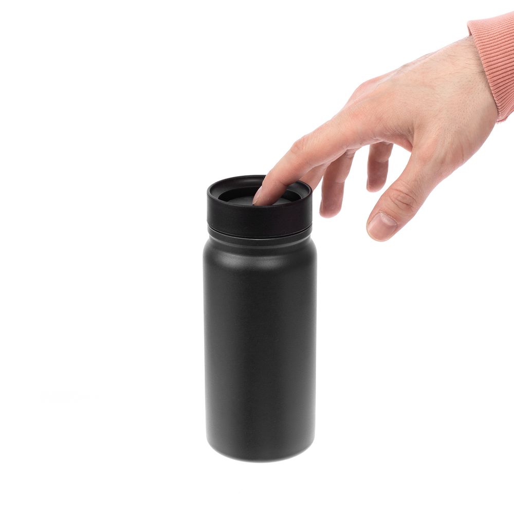 - Герметичная завинчивающаяся крышка с силиконовым уплотнителем и питьевой системой с клапаном — технология 360° позволяет одним нажатием открывать кружку и пить с любой стороны