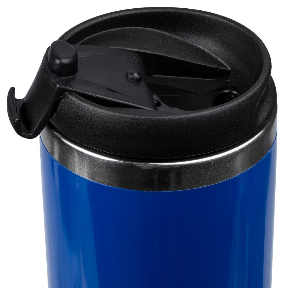 Двухслойная конструкция из пластика снаружи и пищевой нержавеющей стали внутри. Герметичная завинчивающаяся крышка с откидным клапаном для питья.