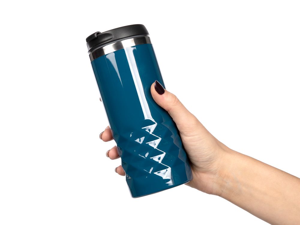 Покрытие кружки Prism напоминает глянцевую эмаль, — и рельефная поверхность корпуса дополнительно подчеркивается яркими бликами.