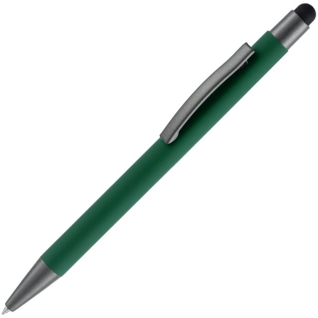 Ручка шариковая Atento Soft Touch со стилусом, зеленая