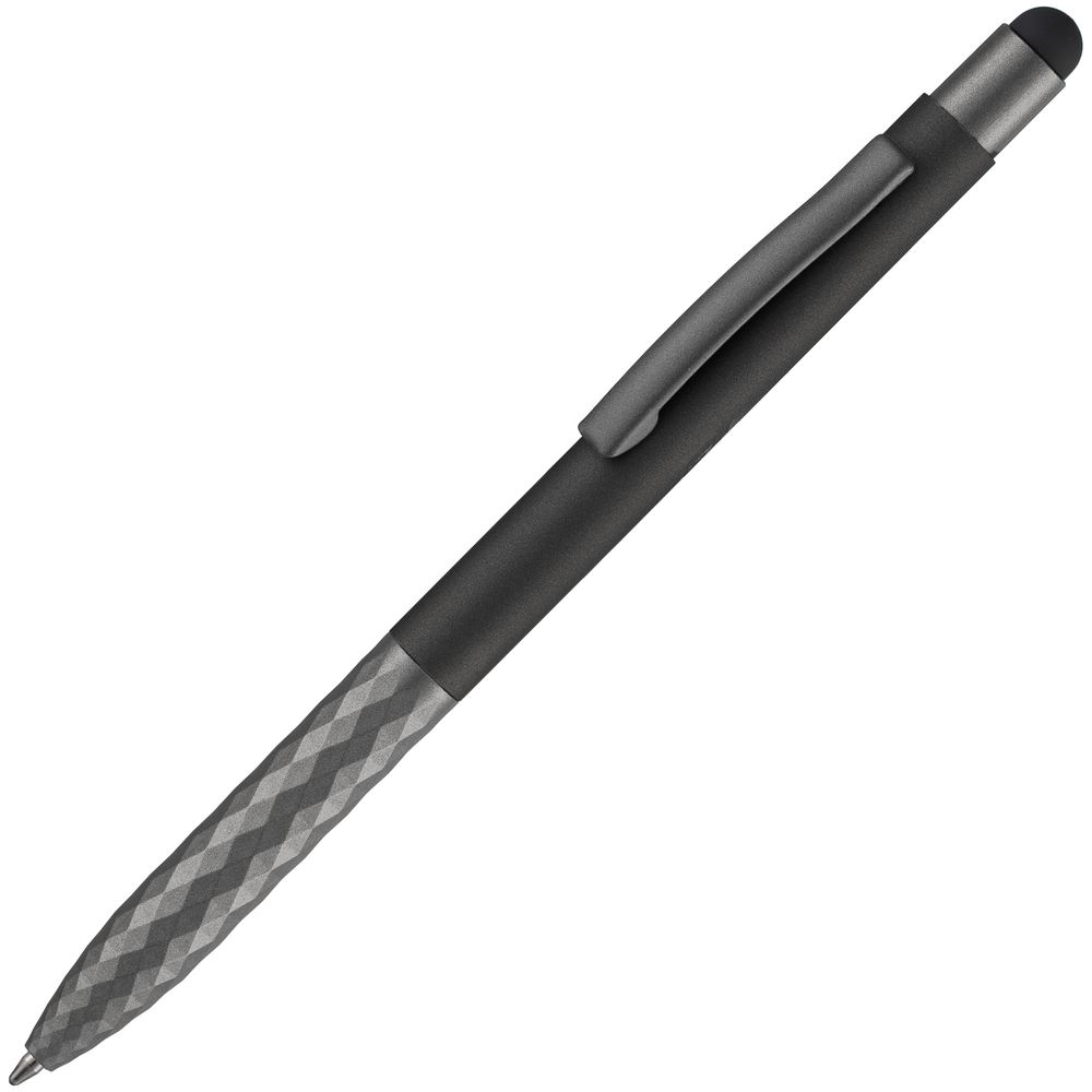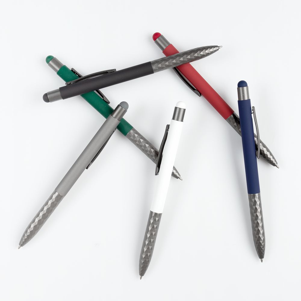 Шариковая ручка Digit Soft Touch привлекает внимание оригинальным дизайном нижней части пластикового корпуса и цветным наконечником-стилусом. Верхняя часть корпуса выполнена из алюминия с покрытием софт-тач — пишущий инструмент не хочется выпускать из рук.