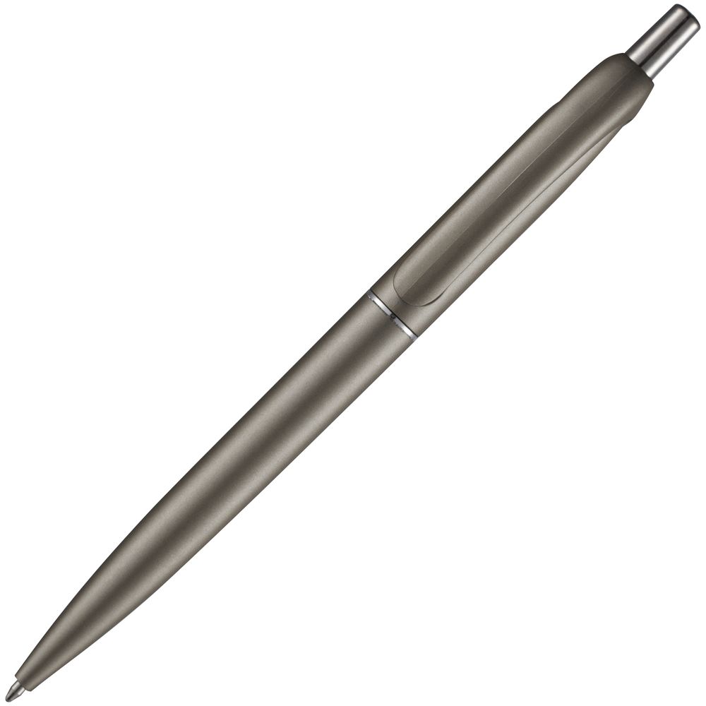 Шариковая пластиковая ручка в корпусе с эффектом «металлик» и серебристыми деталями. Приятная округлая форма клипа добавляет ручке плавности и объема.