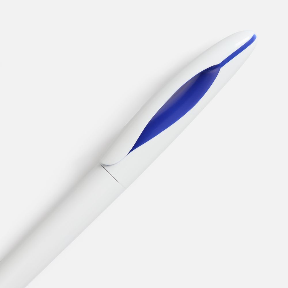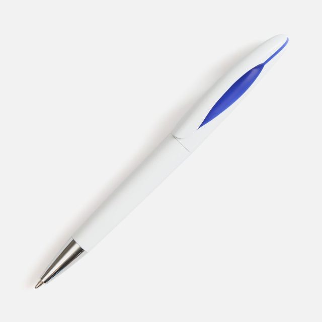 Шариковая ручка приятных округлых форм с белым глянцевым корпусом и цветовым акцентом.Механизм ручки: поворотный.Корпус ручки разбирается, стержень легко заменить.Стержень с синими чернилами.