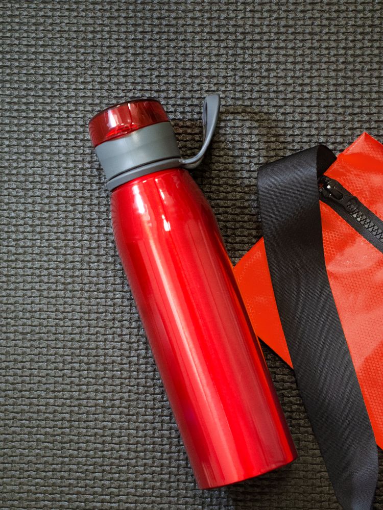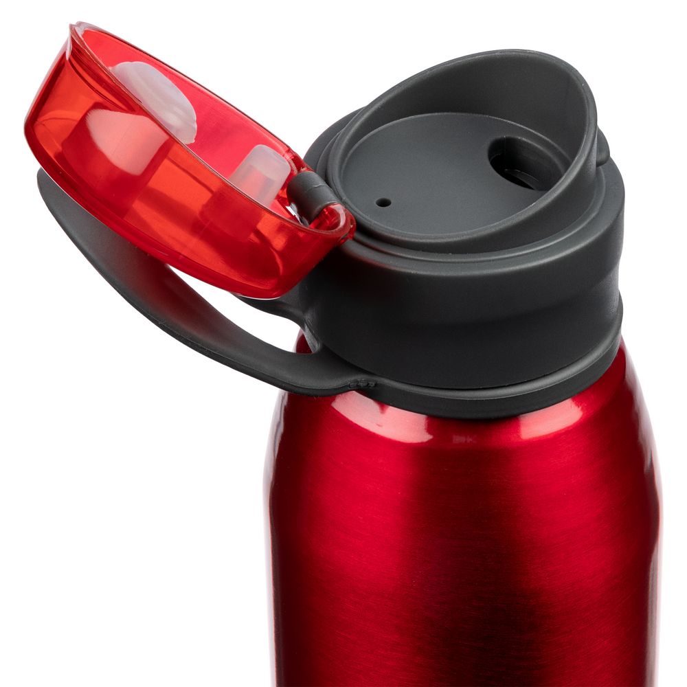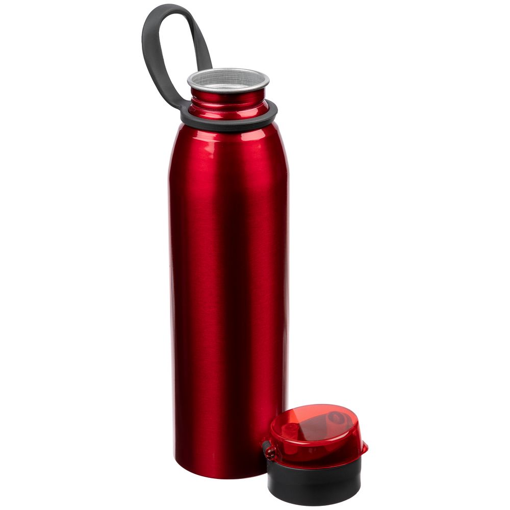 Легкая бутылка для спорта с откидной крышкой и силиконовой петлей для транспортировки.