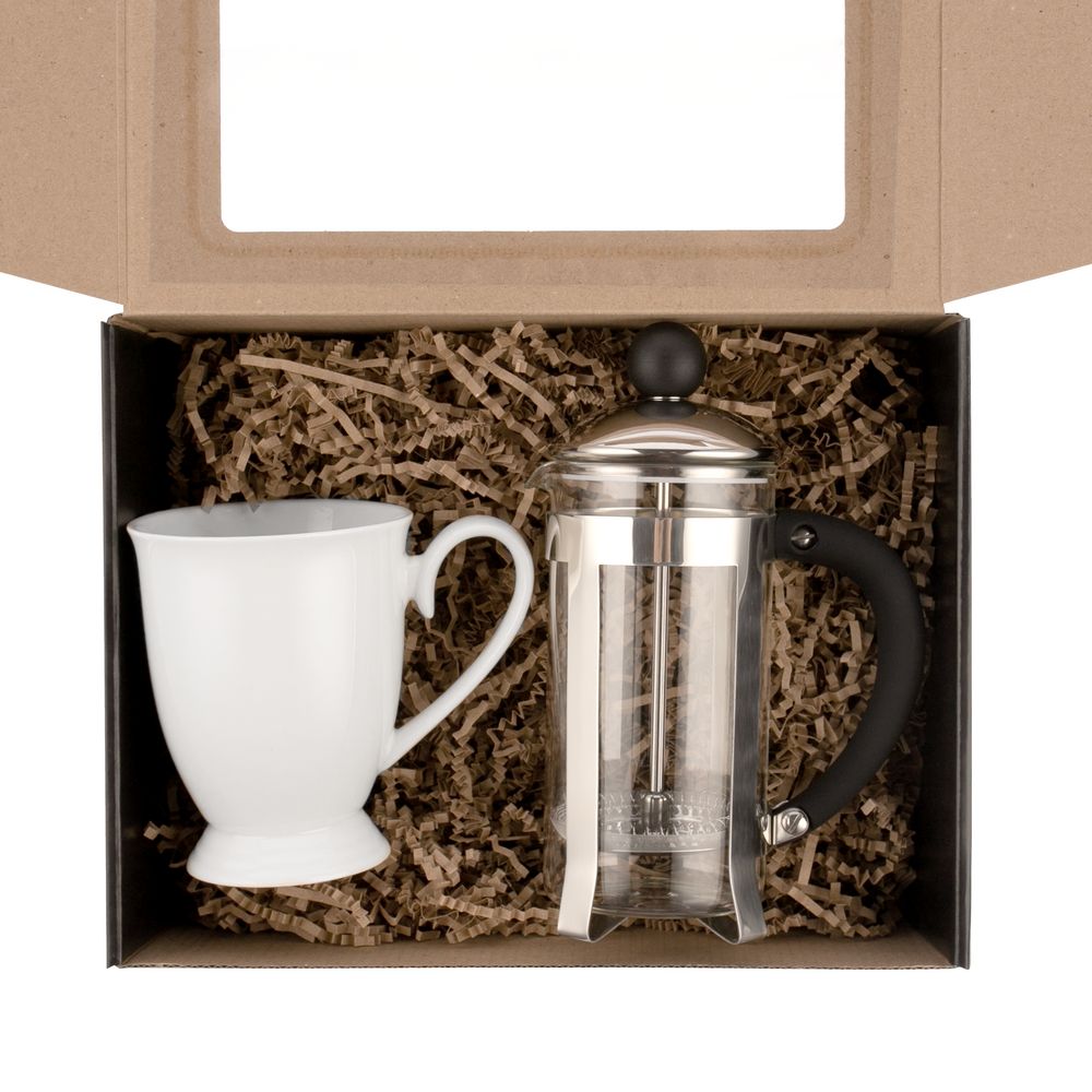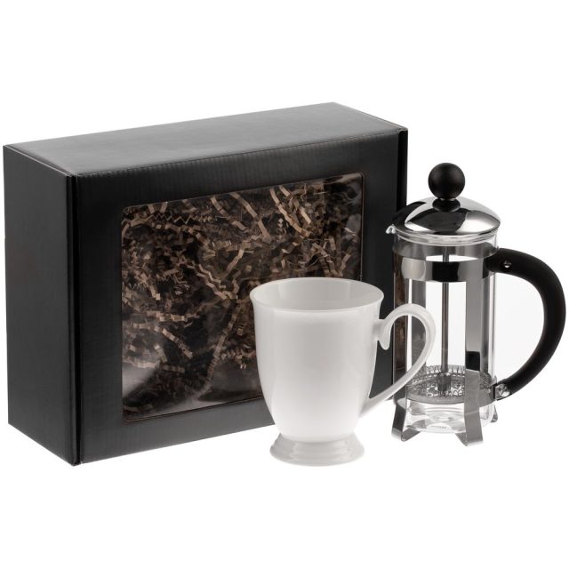 | Размер | френч-пресс: высота 19 см, диаметр 7 см, ширина с ручкой 11,5 см; кружка: диаметр сверху 8,6 см; высота 10,7 см; дно 6 см; коробка: 25,9х19,7х9 см |